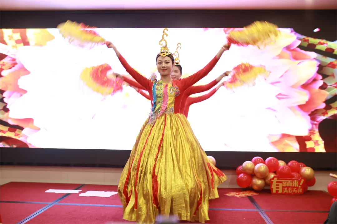 隨著徐總經(jīng)理致辭結(jié)束,晚會的文藝表演環(huán)節(jié)正式開啟。舞臺上,表演團隊輪番登場,為大家?guī)砹艘粓鲆暵犑⒀纭?br/>